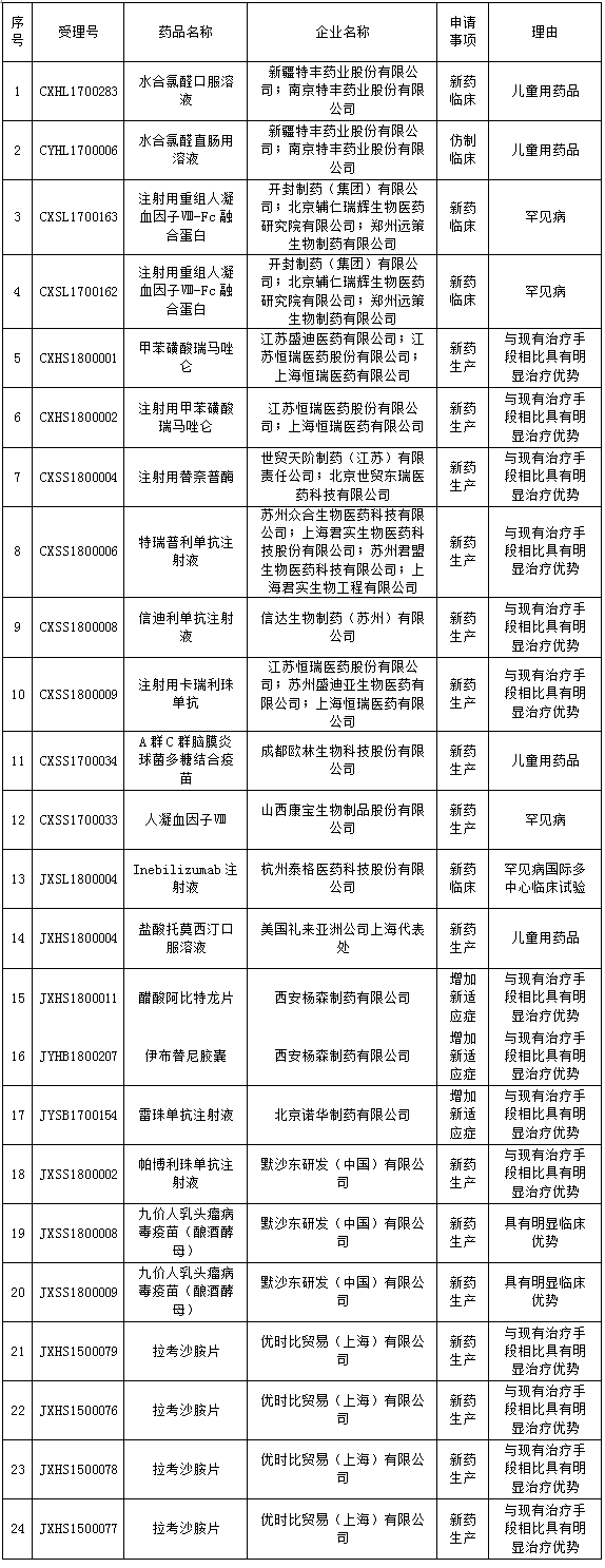 第二十八批拟纳入优先审评程序药品注册申请公示名单如下: